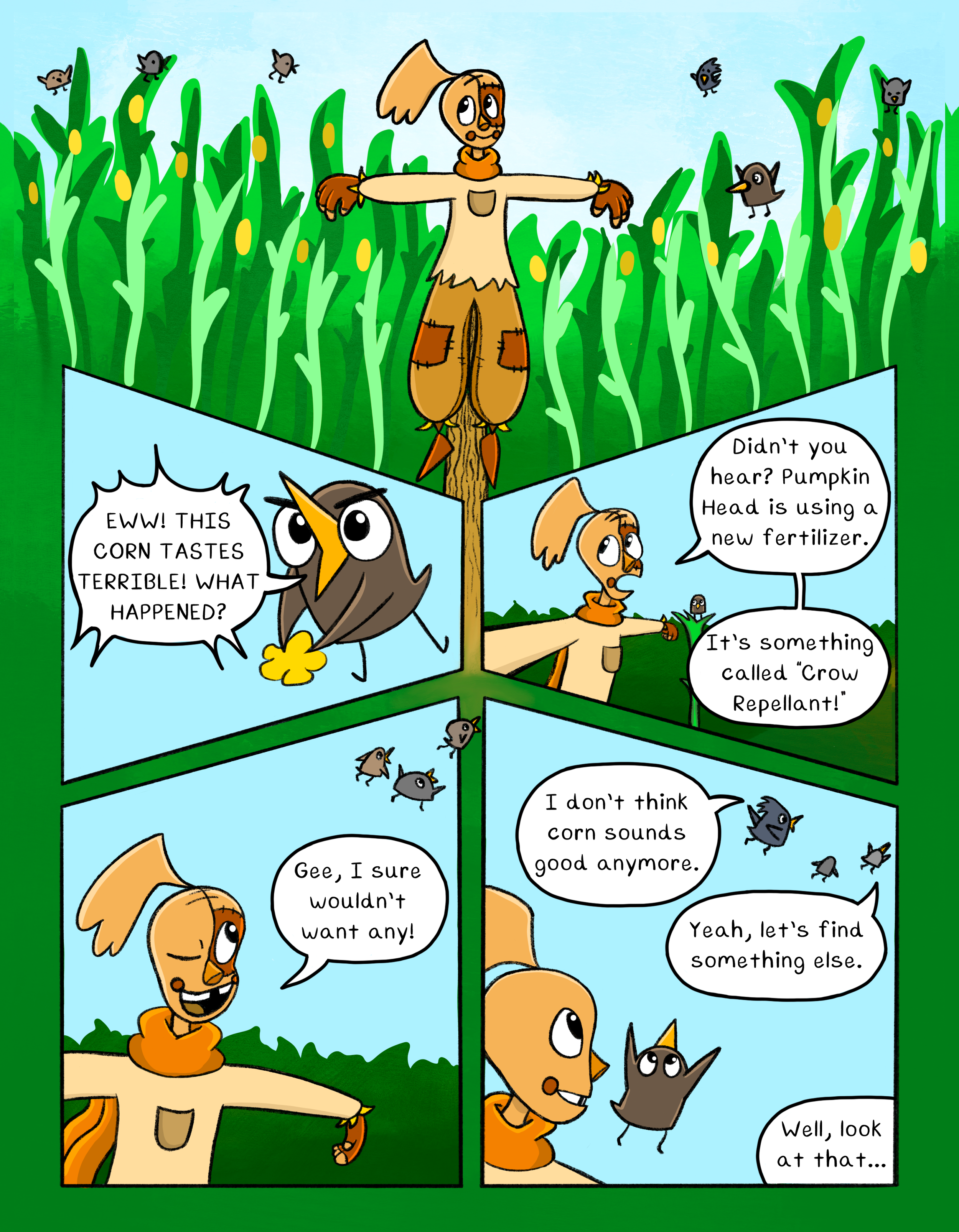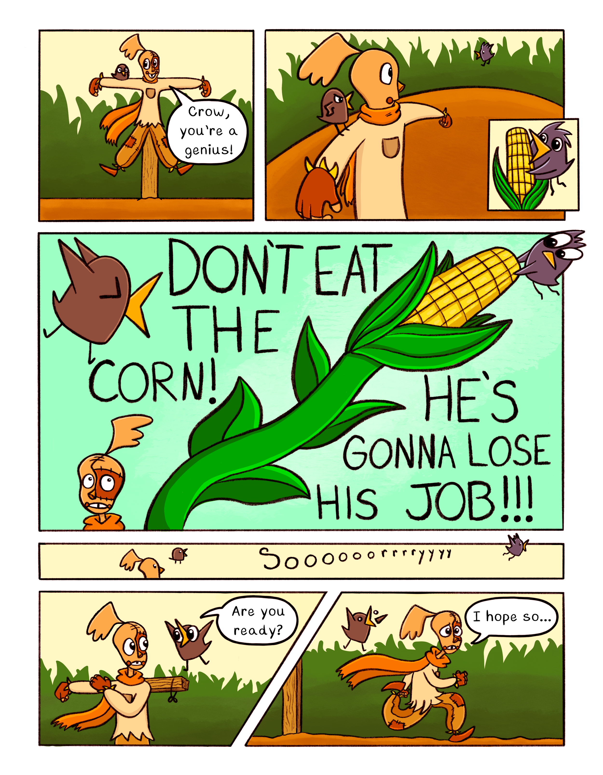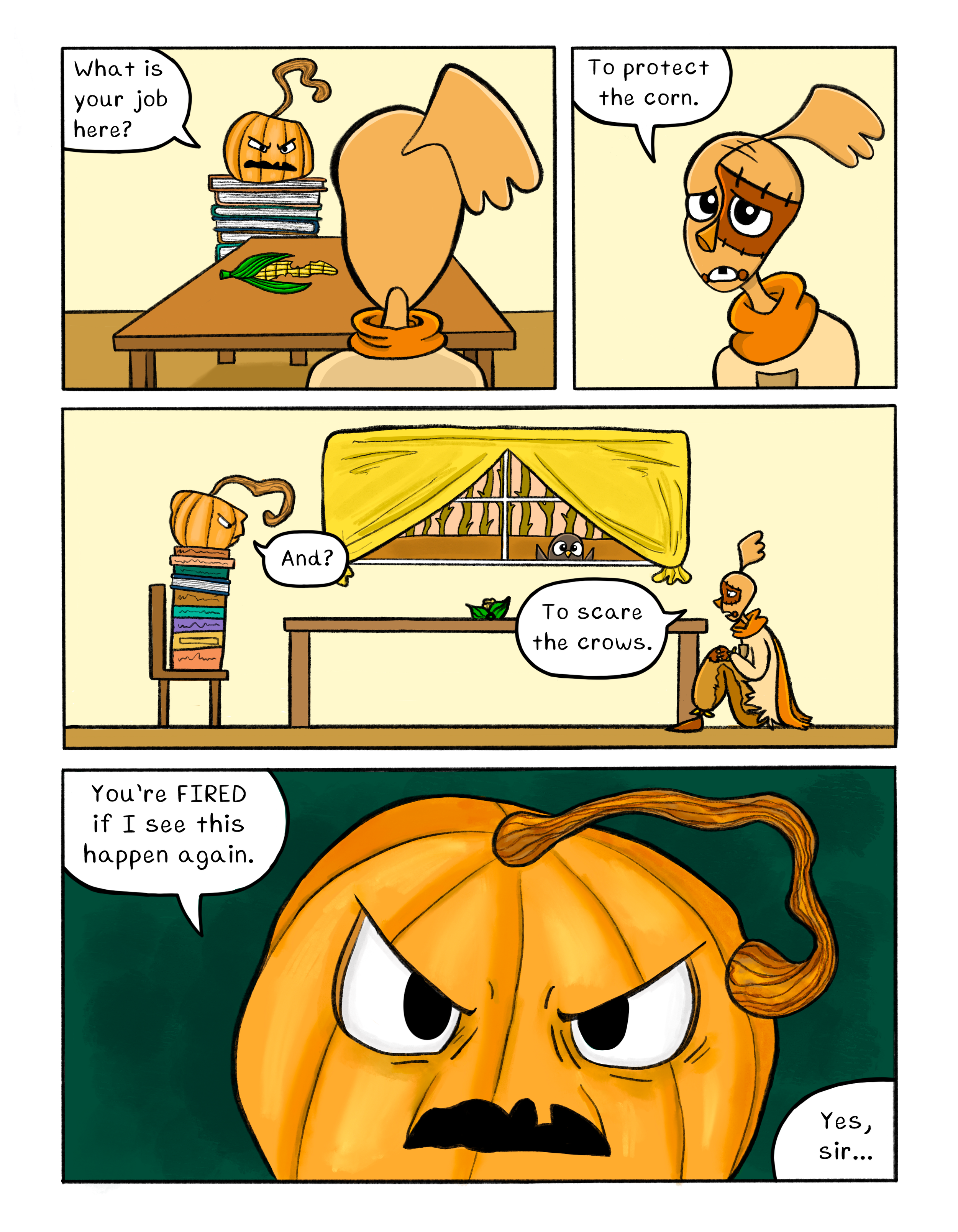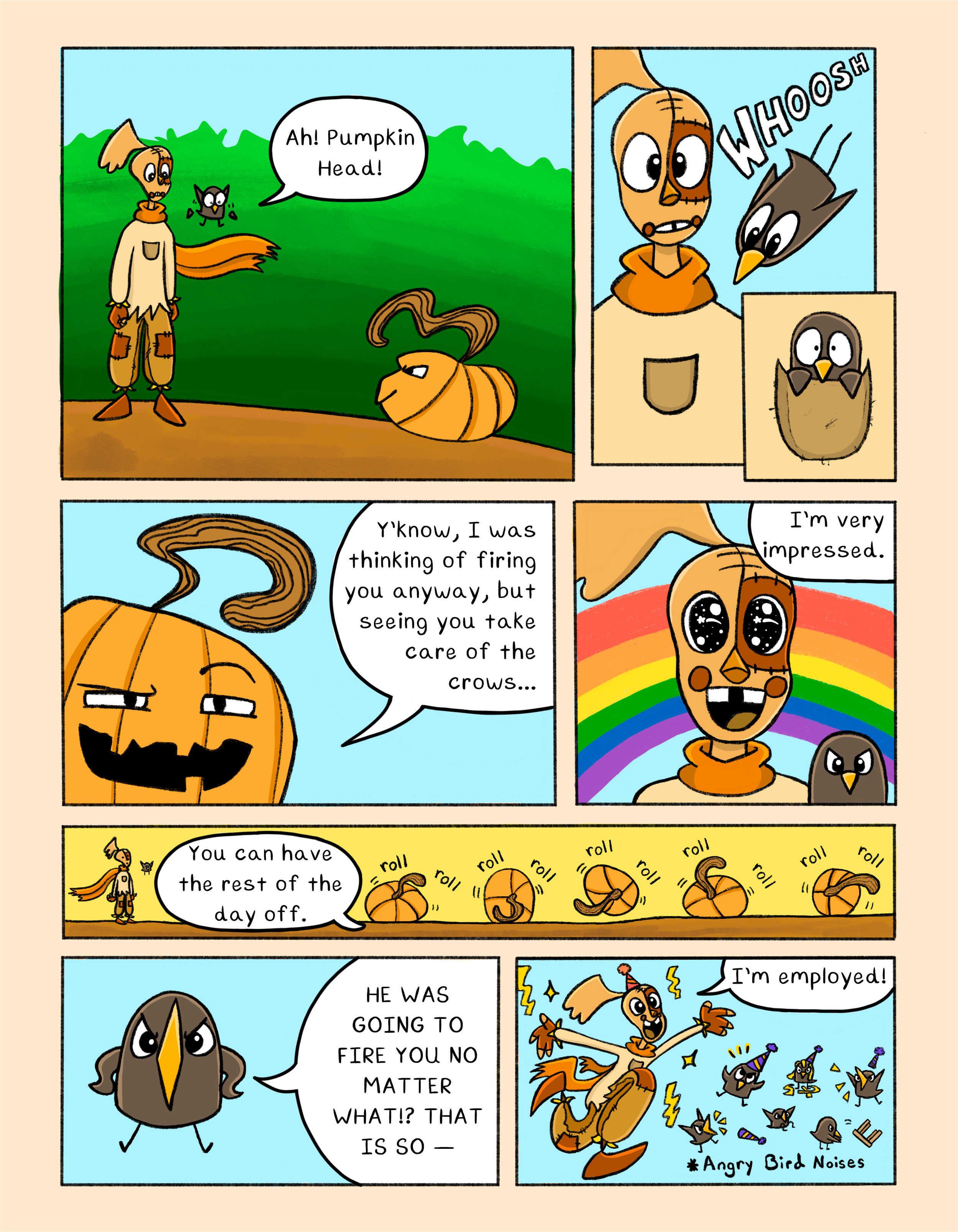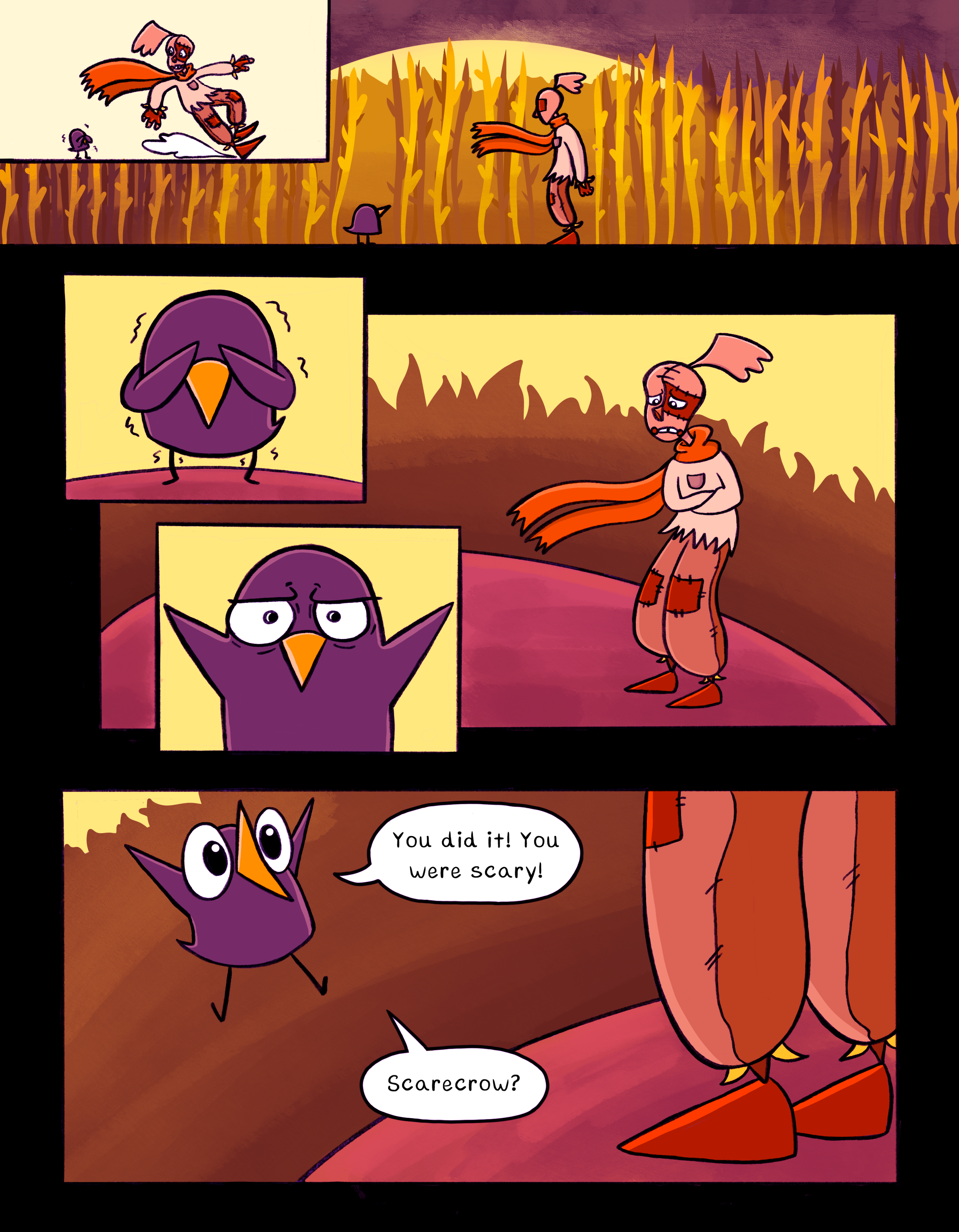 This full-color comic tells the story of a crow teaching a scarecrow to be scary. As my final thesis project at MIAD, my goal was to create a funny, relatable story that can be enjoyed by a young audience, and leave a smile on everyone’s face.